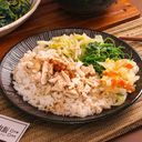 每日手工剝絲,淋上特製醬汁與雞油香氣四溢搭配新鮮現炒配菜,超值精選 | 配菜依季節調整,實際以當日製作為準