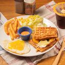 含漢堡豬肉,鬆餅、美式脆薯、滑蛋、鮮奶茶【S】