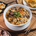 湯頭勾芡嚐到淡淡肉汁味,清爽不膩,經典家常的美味。(此描述僅供參考)