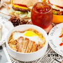 此款為烏龍麵(粗麵)可備注更換油麵(細麵) 內容物:蛋、豬排、中杯紅茶。可選【肉醬/奶培麵】