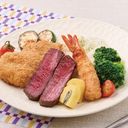 含牛排 (牛肉來源 : 美國、澳洲)(含昆布成分),香酥魚,紅藜麥干貝風味飯,美味配菜有 : 金黃炸豆腐,季節時蔬等。 牛排熟度固定7分熟無法調整。菜色得依季節更替調整。
