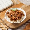 嫩滑的豬肉燥淋在熱騰騰的白飯上,令人垂涎欲滴的台灣經典美食【此描述僅供參考】