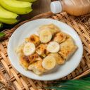餅皮融入香蕉的香甜,經過煎煮後外酥內軟,能感受甜蜜美好。(此描述僅供參考)