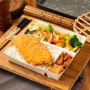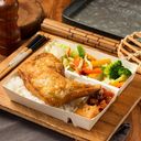 現炸雞排配上每日精選配菜,香氣逼人、美味大滿足!(此描述僅供參考)