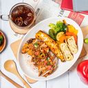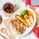 肉品原產地:臺灣雞肉 | 含12穀米飯、根莖時蔬、蔬菜蛋捲、烤雞胸 | 附甜點【隨機】、飲料