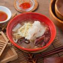 粉腸一口咬下多汁鮮嫩,湯頭甘味清甜。(此描述僅供參考)
