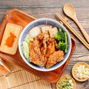酥脆的豬排外層包裹著濃郁起司,搭配飯一起咬下,滋味無窮。(此描述僅供參考)