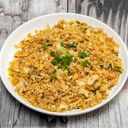 絲滑雞肉片與蛋液均勻包裹米粒,火侯恰到好處且呈現粒粒分明。(此描述僅供參考)