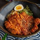 金黃酥脆的炸豬排,浸泡於秀夫特製蜜汁醬中,再以慢火烘烤,紮實甜香的外皮搭上鮮甜的肉汁,交織成令人難忘的好滋味。 肉品原產地:西班牙 附三樣隨機日式小菜、溏心蛋半顆、味噌湯 一碗。