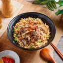 鍋氣十足,粒粒分明,鴨肉及些許洋蔥、蔥花及胡蘿蔔絲點綴,營養一次到位。
