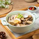嚴選彰化、雲林一帶產地直送超鮮文蛤,每一顆都飽滿多汁,加入美味、鮮嫩的雞腿肉一同燉煮,每一口都彷彿徜徉在大海中。約 650 克/碗。(採用嫩雞腿。內含米酒, 若不食用請先告知。)