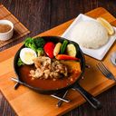 永不敗的好選擇一使用台灣帶骨L型大雞腿,慢燉軟嫩,新鮮雞肉的口感,值得會讓您一吃再吃。搭配秘製的日式北海道湯咖哩,帶您進入不一樣的咖哩世界。附白飯。