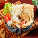 含刀削麵、德國燻腸、四季時蔬、大豆皮、滷豬腱、魚包蛋、龍蝦沙拉球、芋香貢丸、塔香花枝丸、古早味糯米腸、黃金魚豆腐、豬肉片、鳥蛋及香菇貢丸
