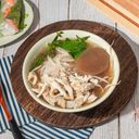 口感爽滑、輕盈開胃,以冰鎮米線為主,配生菜與香草,鋪上雞肉片與紅椒,擠上檸檬更添清新