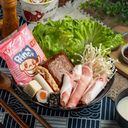 優惠套餐無法指定或更換品項,短缺將更換相同價位商品。內含:主食、季節性綠色時蔬、大黑豆干、精選菇類、精緻火鍋料、豬肉片、豆芽菜。一份套餐只能選一種配料,、辣度及做法。圖片僅供參考。